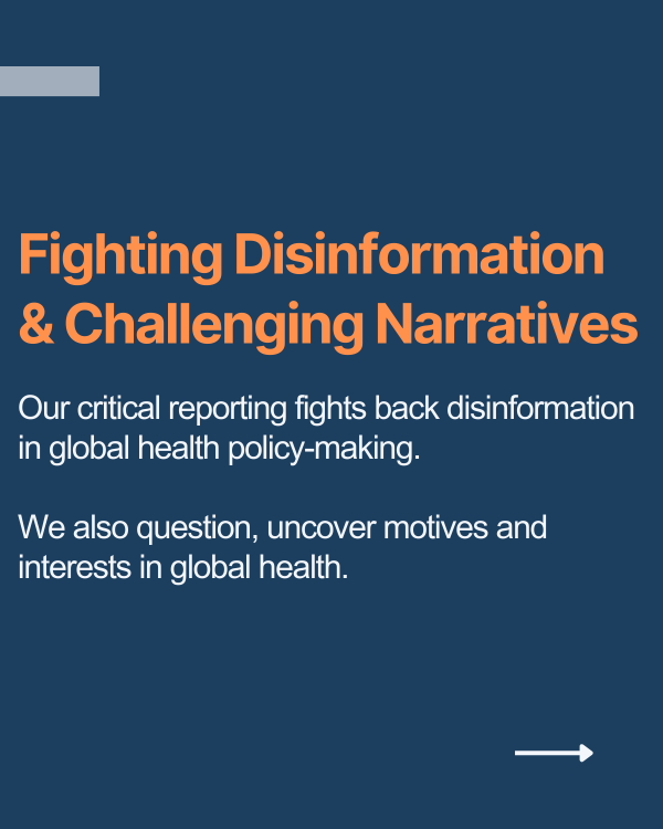 ➢ Fighting Disinformation: Journalism has to be at the front-lines of combating disinformation. Your support enables us to provide verified, in-depth reporting and analyses on not only health news, and also on the powers that hold sway.